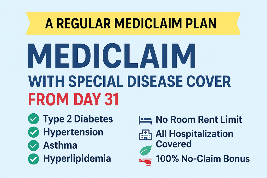 A Regular Mediclaim Plan – With Special Disease Cover from Day 31